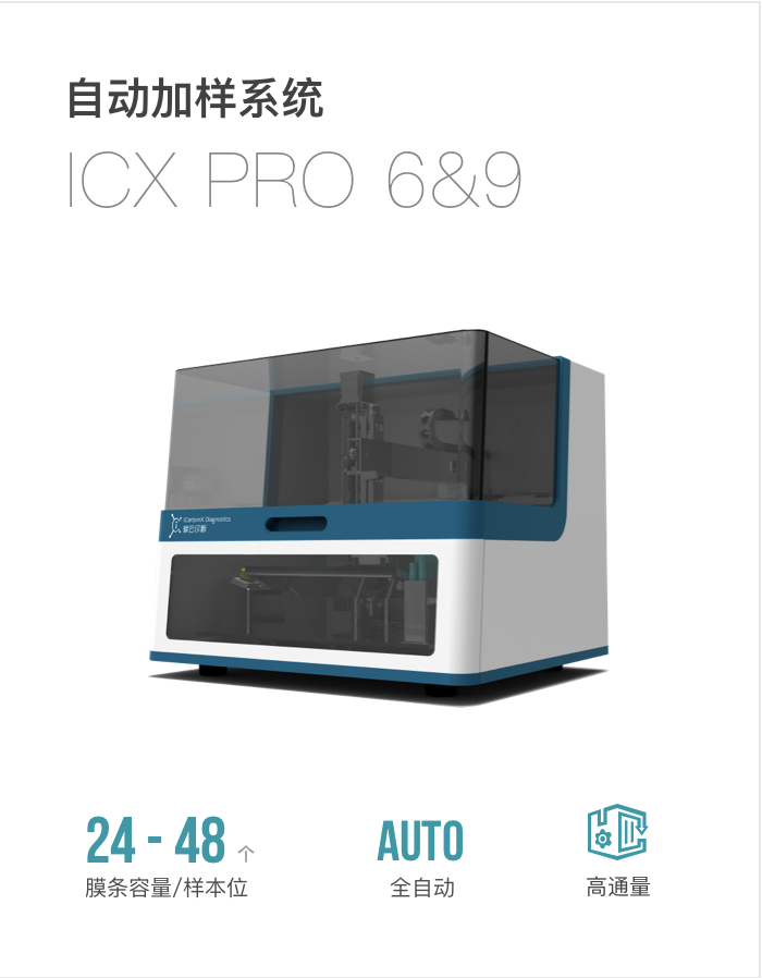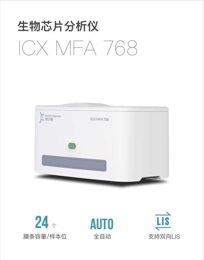 膜芯片平台为碳云智能建立的新型免疫检测平台,采用精准微量点样技术,将多组分免疫反应物固定于膜芯片。样本被自动加入前处理设备并进行反应后,即可通过膜芯片分析仪进行高敏荧光成像及分析,完成对样本快速检测。